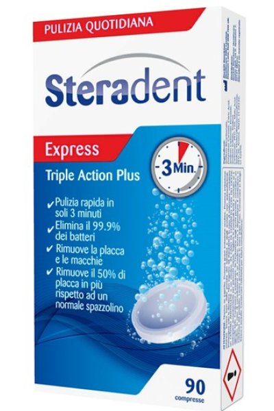 Compresse igienizzanti per dentiere sia totali che parziali.