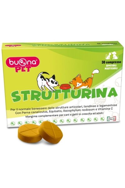 Somministrare le compresse di STRUTTURINA direttamente in bocca all’animale o sminuzzate nel cibo gradito. Completare la razione giornaliera con l’alimento abituale. Lasciare sempre acqua fresca a disposizione.