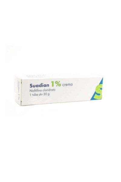 SovradosaggioIl sovradosaggio acuto con naftifina topica è improbabile e non si prevedono situazioni di pericolo di vita. Dato l’assorbimento trascurabile del principio attivo attraverso la pelle è improbabile che si verifichi un’intossicazione sistemica con applicazione cutanea di Suadian. In caso di assunzione orale accidentale si raccomanda un trattamento sintomatico appropriato.