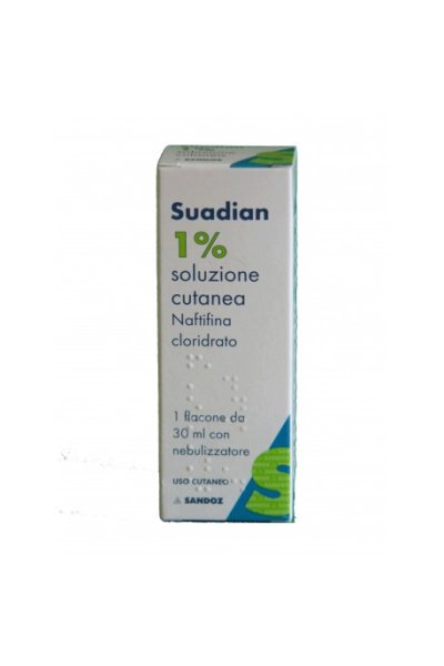 SovradosaggioIl sovradosaggio acuto con naftifina topica è improbabile e non si prevedono situazioni di pericolo di vita. Dato l’assorbimento trascurabile del principio attivo attraverso la pelle è improbabile che si verifichi un’intossicazione sistemica con applicazione cutanea di Suadian. In caso di assunzione orale accidentale si raccomanda un trattamento sintomatico appropriato.