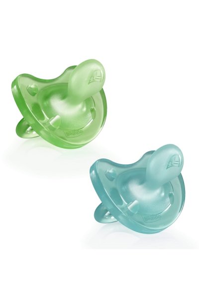 Ciuccio soffice e delicato. Supporta la respirazione del bambino. La forma aiuta a posizionare la lingua in avanti lasciando aperte le vie aeree.Curvatura laterale distribuisce uniformemente la pressione della lingua sul palato per la sua corretta formazione.