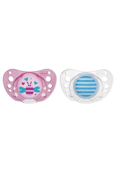 Succhietto dotto di speciale scudo studiato per la massima areazione della pelle, con tettina attiva che favorisce attivamente il corretto sviluppo della bocca, fori anti-irritazione: garantiscono la circolazione dell'aria evitando il ristagno della saliva e lasciando la pelle libera di respirare, forma ergonomica che si adatta al viso del bambino, garantendo lo spazio corretto per il naso e il mento e bordi arrotondati: per appoggiarsi delicatamente sulla pelle.