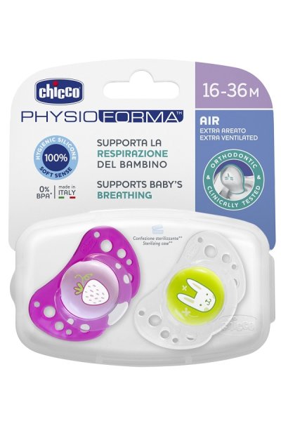 Succhietto dotto di speciale scudo studiato per la massima areazione della pelle, con tettina attiva che favorisce attivamente il corretto sviluppo della bocca, fori anti-irritazione: garantiscono la circolazione dell'aria evitando il ristagno della saliva e lasciando la pelle libera di respirare, forma ergonomica che si adatta al viso del bambino, garantendo lo spazio corretto per il naso e il mento e bordi arrotondati: per appoggiarsi delicatamente sulla pelle.