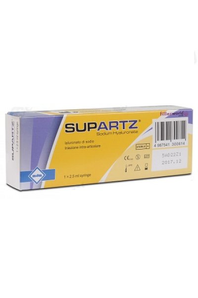 • Supartz è una soluzione sterile per iniezioni intraarticolari, fornita in una siringa di vetro che dispensa 2,5 ml di ialuronato di sodio in un tampone fisiologico di cloruro di sodio fosfato.