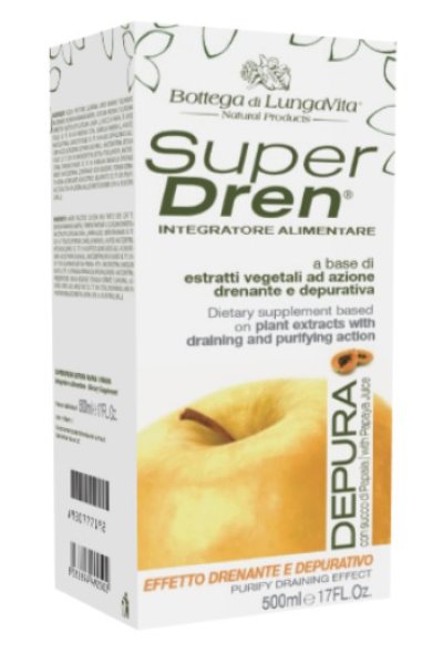 Acqua, fruttosio, glicerina, cardo mariano tegumento del seme e.f. (Silybum marianum Gaertn.), curcuma rizoma e.f. [Curcuma domestica Valeton (syn curcuma longa L.)], succo di papaya, tè verde foglie e.s. tit. 50% in polifenoli totali [Camellia sinensis (L.) Kuntze, maltodestrina], carciofo foglie e.s. tit. 5% in acidi caffeilchinici calc. come acido clorogenico (Cynara scolymus L., maltodestrina), betulla foglie e.s. tit. 0,3% in flavonoidi totali espressi in iperoside (Betula pendula Roth., maltodestrina), tarassaco radice e.s. tit. 2% in inulina (Taraxacum officinale Weber., maltodestrina); conservanti: sodio benzoato, potassio sorbato; aroma; acidificante: acido citrico; mela frutto e.s. tit. 80% polifenoli totali e 5% in florizina [Malus domestica Borkh. (syn. M. sylvestris (l.) Mill.)].