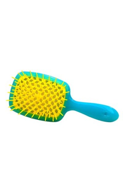 La base pneumatica della spazzola è costituita da un fondo definito da una particolare foratura ad alveare brevettata. L'aria calda del phon è così distribuita in modo uniforme sulla chioma senza stressarla e i capelli sono asciutti in pochi passaggi senza seccarsi.