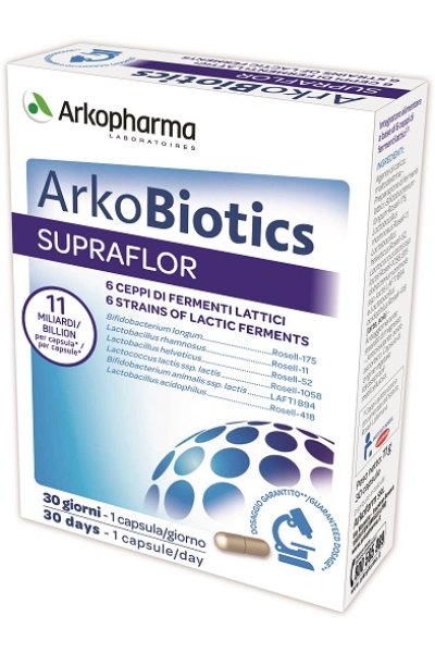 Integratore alimentare a base di 6 ceppi fermenti lattici: Bifidobacterium longum Rosell-175, Lactobacillus rhamnosus Rosell-11, Lactobacillus helveticus Rosell-52, Lactococcus lactis ssp. Lactis Rosell-1058, Bifidobacterium animalis ssp. Lactis LAFTI B94, Lactobacillus acidophilus Rosell-418.
