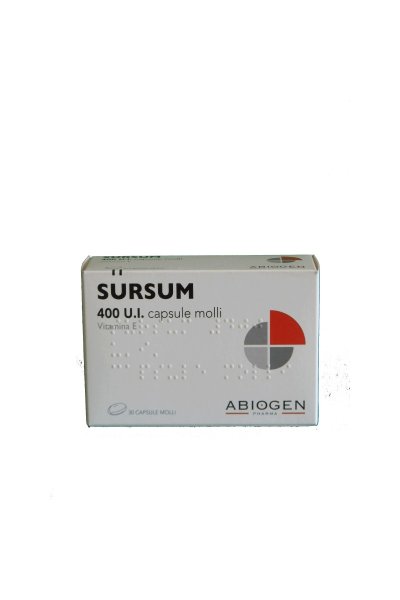 Una capsula molle di SURSUM 200 U.I. contiene: Principio attivo: RRR–α–Tocoferolo mg 140 (pari a 200 U.I. di vitamina E). Una capsula molle di SURSUM 400 U.I. contiene: Principio attivo: RRR–α–Tocoferolo mg 280 (pari a 400 U.I. di vitamina E). Eccipiente con effetti noti: olio di soia raffinato. Per l’elenco completo degli eccipienti, vedere paragrafo 6.1.