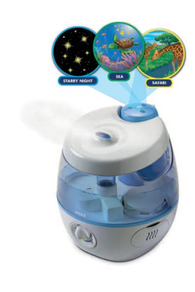 Umidificatore a ultrasuoni con proiettore di immagini.