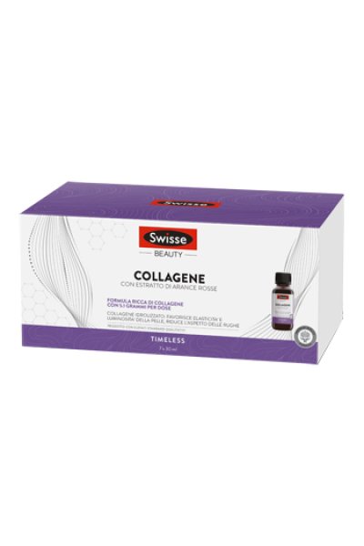 Integratore alimentare a base di collagene idrolizzato ed estratto di arance rosse. Il collagene è una proteina strutturale che si trova particolarmente nel derma della pelle. Con il passare del tempo e con l'esposizione ai raggi solari, la quantità di collagene presente nel derma si riduce progressivamente e si manifestano così i primi segni di invecchiamento della pelle, come perdita d'elasticità e formazione delle rughe. L'integrazione di collagene, come quello contenuto in Swisse Collagene, aiuta ad aumentare la produzione di collagene ed elastina, e a migliorare quindi elasticità e aspetto della pelle.