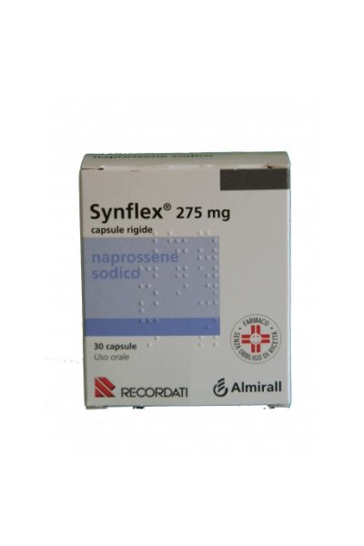 PosologiaAdulti 550 mg all’inizio; in seguito 275 mg ogni 6-8 ore oppure 550 mg ogni 12 ore secondo il parere del Medico. Anziani Nel trattamento di pazienti anziani la posologia deve essere attentamente stabilita dal medico che dovrà valutare una eventuale riduzione dei dosaggi sopraindicati. Insufficienza epatica: nei pazienti con funzionalità epatica compromessa è opportuno ricorrere al monitoraggio periodico dei parametri clinici e di laboratorio, specialmente in caso di trattamento prolungato. Tali pazienti devono essere trattati con la minima dose efficace (vedere paragrafo 4.4). Insufficienza renale: nei pazienti con funzionalità renale compromessa è opportuno ricorrere al monitoraggio periodico dei parametri clinici e di laboratorio, specialmente in caso di trattamento prolungato. Il trattamento cronico con Synflex è controindicato in pazienti con clearance della creatinina inferiore a 20 ml/minuto (vedere paragrafo 4.4). Gli effetti indesiderati possono essere minimizzati con l’uso della più bassa dose efficace per la più breve durata possibile di trattamento che occorre per controllare i sintomi (vedere paragrafo 4.4).