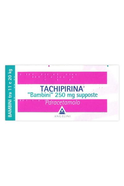 PosologiaPer i bambini è indispensabile rispettare la posologia definita in funzione del loro peso corporeo, e quindi scegliere la formulazione adatta. Le età approssimate in funzione del peso corporeo sono indicate a titolo d’informazione. Negli adulti la posologia massima per via orale è di 3000 mg e per via rettale è di 4000 mg di paracetamolo al giorno (vedere par. 4.9). Il medico deve valutare la necessità di trattamenti per oltre 3 giorni consecutivi. Lo schema posologico di Tachipirina in rapporto al peso corporeo ed alla via di somministrazione è il seguente: Compresse da 500 mg • Bambini di peso compreso tra 21 e 25 kg (approssimativamente tra i 6,5 ed inferiore a 8 anni): ½ compressa alla volta, da ripetere se necessario dopo 4 ore, senza superare le 6 somministrazioni al giorno (3 compresse). • Bambini di peso compreso tra 26 e 40 kg (approssimativamente tra gli 8 e gli 11 anni): 1 compressa alla volta, da ripetere se necessario dopo 6 ore, senza superare le 4 somministrazioni al giorno. • Ragazzi di peso compreso tra 41 e 50 kg (approssimativamente tra i 12 ed i 15 anni): 1 compressa alla volta, da ripetere se necessario dopo 4 ore, senza superare le 6 somministrazioni al giorno. • Ragazzi di peso superiore a 50 kg (approssimativamente sopra i 15 anni): 1 compressa alla volta, da ripetere se necessario dopo 4 ore, senza superare le 6 somministrazioni al giorno. • Adulti: 1 compressa alla volta, da ripetere se necessario dopo 4 ore, senza superare le 6 somministrazioni al giorno. Nel caso di forti dolori o febbre alta, 2 compresse da 500 mg da ripetere se necessario dopo non meno di 4 ore. Granulato effervescente da 500 mg in bustine Sciogliere il granulato effervescente in un bicchiere d’acqua. • Bambini di peso compreso tra 26 e 40 kg (approssimativamente tra gli 8 e gli 11 anni): 1 bustina alla volta, da ripetere se necessario dopo 6 ore, senza superare le 4 somministrazioni al giorno. • Ragazzi di peso compreso tra 41 e 50 kg (approssimativamente tra i 12 ed i 15 anni): 1 bustina alla volta, da ripetere se necessario dopo 4 ore, senza superare le 6 somministrazioni al giorno. • Ragazzi di peso superiore a 50 kg (approssimativamente sopra i 15 anni): 1 bustina alla volta, da ripetere se necessario dopo 4 ore, senza superare le 6 somministrazioni al giorno. • Adulti: 1 bustina alla volta, da ripetere se necessario dopo 4 ore, senza superare le 6 somministrazioni al giorno. Nel caso di forti dolori o febbre alta, 2 bustine da 500 mg da ripetere se necessario dopo non meno di 4 ore. Granulato effervescente da 125 mg in bustine Sciogliere il granulato effervescente in un bicchiere d’acqua. • Bambini di peso compreso tra 7 e 10 kg (approssimativamente tra i 6 ed i 19 mesi): 1 bustina alla volta, da ripetere se necessario dopo 6 ore, senza superare le 4 somministrazioni al giorno. • Bambini di peso compreso tra 11 e 12 kg (approssimativamente tra i 20 ed i 29 mesi): 1 bustina alla volta, da ripetere se necessario dopo 4 ore, senza superare le 6 somministrazioni al giorno. • Bambini di peso compreso tra 13 e 20 kg (approssimativamente tra i 30 mesi ed inferiore a 6,5 anni): 2 bustine alla volta (corrispondenti a 250 mg di paracetamolo), da ripetere se necessario dopo 6 ore, senza superare le 4 somministrazioni al giorno. • Bambini di peso compreso tra 21 e 25 kg (approssimativamente tra i 6,5 ed inferiore a 8 anni): 2 bustine alla volta (corrispondenti a 250 mg di paracetamolo), da ripetere se necessario dopo 4 ore, senza superare le 6 somministrazioni al giorno. Supposte Neonati da 62,5 mg • Bambini di peso compreso tra 3,2 e 5 kg (approssimativamente tra la nascita ed i 2 mesi): 1 supposta alla volta, da ripetere se necessario dopo 6 ore, senza superare le 4 somministrazioni al giorno. Supposte Prima Infanzia da 125 mg • Bambini di peso compreso tra 6 e 7 kg (approssimativamente tra i 3 ed i 5 mesi): 1 supposta alla volta, da ripetere se necessario dopo 6 ore, senza superare le 4 somministrazioni al giorno. • Bambini di peso compreso tra 7 e 10 kg (approssimativamente tra i 6 ed i 19 mesi): 1 supposta alla volta, da ripetere se necessario dopo 4 - 6 ore, senza superare le 5 somministrazioni al giorno. • Bambini di peso compreso tra 11 e 12 kg (approssimativamente tra i 20 ed i 29 mesi): 1 supposta alla volta, da ripetere se necessario dopo 4 ore, senza superare le 6 somministrazioni al giorno. Supposte Bambini da 250 mg • Bambini di peso compreso tra 11 e 12 kg (approssimativamente tra i 20 ed i 29 mesi): 1 supposta alla volta, da ripetere se necessario dopo 8 ore, senza superare le 3 somministrazioni al giorno. • Bambini di peso compreso tra 13 e 20 kg (approssimativamente tra i 30 mesi ed inferiore a 6,5 anni): 1 supposta alla volta, da ripetere se necessario dopo 6 ore, senza superare le 4 somministrazioni al giorno. Supposte Bambini da 500 mg • Bambini di peso compreso tra 21 e 25 kg (approssimativamente tra i 6,5 ed inferiore a 8 anni): 1 supposta alla volta, da ripetere se necessario dopo 8 ore, senza superare le 3 somministrazioni al giorno. • Bambini di peso compreso tra 26 e 40 kg (approssimativamente tra gli 8 e gli 11 anni): 1 supposta alla volta, da ripetere se necessario dopo 6 ore, senza superare le 4 somministrazioni al giorno. Supposte Adulti da 1000 mg • Ragazzi di peso compreso tra 41 e 50 kg (approssimativamente tra i 12 ed i 15 anni): 1 supposta alla volta, da ripetere se necessario dopo 8 ore, senza superare le 3 somministrazioni al giorno. • Ragazzi di peso superiore a 50 kg (approssimativamente sopra i 15 anni): 1 supposta alla volta, da ripetere se necessario dopo 6 ore, senza superare le 4 somministrazioni al giorno. • Adulti: 1 supposta alla volta, da ripetere se necessario dopo 6 ore, senza superare le 4 somministrazioni al giorno. Insufficienza renale In caso di insufficienza renale grave (clearance della creatinina inferiore a 10 ml/min), l’intervallo tra le somministrazioni deve essere d