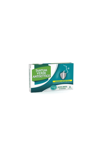 TANTUM VERDE ANTISETTICO è utilizzato per alleviare i sintomi del mal di gola. Sciogliendo la pastiglia in bocca si consente ai principi attivi di agire nella zona dolorante, esercitando inoltre un'azione lubrificante e offrendo sollievo. Questo aiuta ad alleviare il dolore e il fastidio a livello della bocca e della gola.