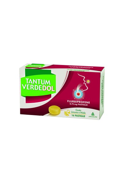AvvertenzeAlle dosi consigliate, nell’usare il prodotto nelle sue diverse forme farmaceutiche, l’eventuale deglutizione non comporta alcun danno per il paziente, in quanto la dose di flurbiprofene è ampiamente inferiore a quella comunemente utilizzata nei trattamenti per via sistemica. L’uso del prodotto, specie se prolungato, può dare origine a fenomeni di sensibilizzazione o di irritazione locale; in tali casi occorre interrompere il trattamento e consultare il medico per istituire, se necessario, una terapia idonea. In pazienti con insufficienza renale, cardiaca o epatica il prodotto deve essere utilizzato con cautela. È consigliabile non associare il prodotto con altri FANS. Sono stati riportati casi di broncospasmo con flurbiprofene in pazienti con anamnesi di asma bronchiale. Effetti Gastrointestinali Flurbiprofene deve essere somministrato con cautela a pazienti con anamnesi di ulcera peptica e altre malattie gastrointestinali poich tali condizioni possono essere riacutizzate. Il rischio di emorragia gastrointestinale, ulcera o perforazione è più alto all’aumentare del dosaggio di flurbiprofene in pazienti con una storia di ulcera, in particolare se complicata da emorragia e perforazione e negli anziani. Questi pazienti devono iniziare il trattamento con la più bassa dose disponibile. Emorragia gastrointestinale, ulcera o perforazione sono stati riportati con tutti i FANS in qualsiasi momento del trattamento. Questi eventi avversi possono essere fatali e possono verificarsi con o senza sintomi di preavviso oppure in caso di precedente storia di gravi eventi gastrointestinali. Pazienti con anamnesi di malattie gastrointestinali, soprattutto se anziani, devono riportare qualsiasi sintomo insolito di tipo addominale (specialmente emorragia gastrointestinale) nelle fasi iniziali di trattamento. I pazienti anziani hanno una aumentata frequenza di reazioni avverse ai FANS, specialmente emorragia gastrointestinale e perforazione, che possono essere fatali. Gli effetti indesiderati possono essere minimizzati con l’uso della più bassa dose efficace per la più breve durata possibile di trattamento che occorre per controllare i sintomi (vedere il paragrafo 4.2). Informazioni importanti su alcuni eccipienti TANTUM VERDEDOL Pastiglie gusto Limone e Miele contiene: • 1,095 g di glucosio e 1,375 g di saccarosio per pastiglia. I pazienti affetti da rari problemi ereditari di intolleranza al fruttosio, da malassorbimento di glucosio–galattosio, o da insufficienza di sucrasi isomaltasi, non devono assumere questo medicinale. Non usare per trattamenti protratti. Dopo brevi periodi di trattamento senza apprezzabili risultati consultare il medico. Tenere il medicinale fuori dalla vista e dalla portata dei bambini.