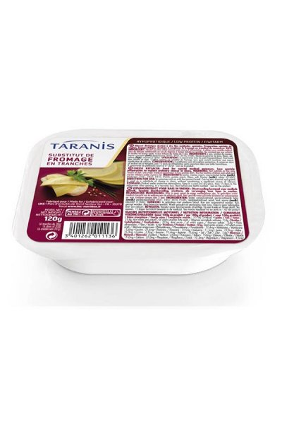Alimento aproteico tipo formaggio a fette. Indicato per le diete che richiedono un ridotto apporto di proteine e un controllo sugli aminoacidi.