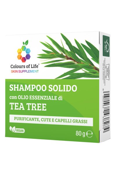 Shampoo solido dalla formula fresca con olio essenziale di tea tree ad azione purificante, adatta per cute e capelli grassi.