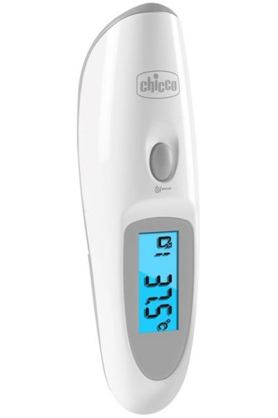 Termometro frontale a infrarossi per misurare la febbre del bambino a contatto.