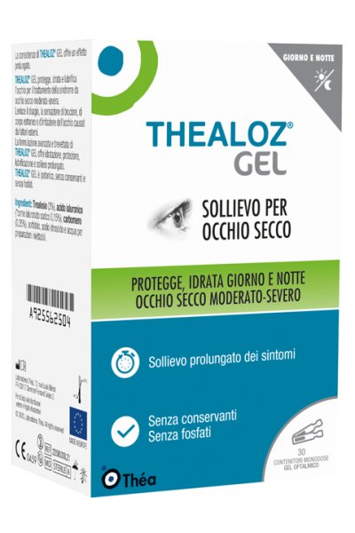 Thealoz Gel è un gel fluido da usare sulla superficie dell’occhio durante il giorno e la notte. Può usare Thealoz Gel quando ha segni e sintomi di entità da moderata a grave di occhio secco quali fastidio, dolore pungente o irritazione oculare. Questi sintomi possono essere causati da fattori esterni quali vento, fumo, inquinamento, polvere, sole o freddo, caldo secco, climatizzazione, viaggi in aereo, lavoro protratto di fronte allo schermo del computer. Thealoz Gel non contiene conservanti e previene irritazioni e reazioni allergiche che possono insorgere con l’uso di prodotti oftalmici che contengono conservanti. L’utilizzo di prodotti senza conservanti è consigliabile in caso di sensibilità oculare o per uso prolungato.