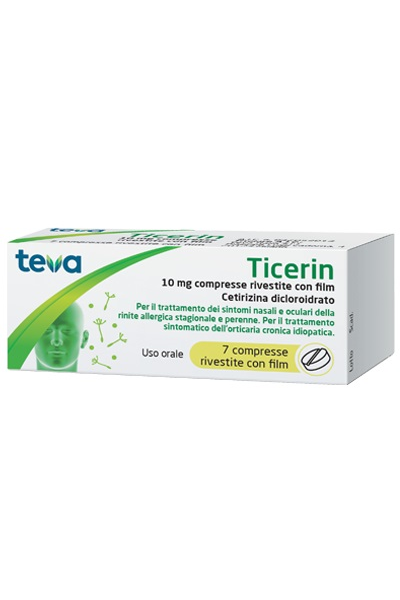 Indicazioni terapeuticheAdulti e pazienti pediatrici a partire dai 6 anni di età:• Cetirizina è indicata per il trattamento dei sintomi nasali e oculari della rinite allergica stagionale e perenne.• Cetirizina è indicata per il trattamento sintomatico dell’orticaria cronica idiopatica.