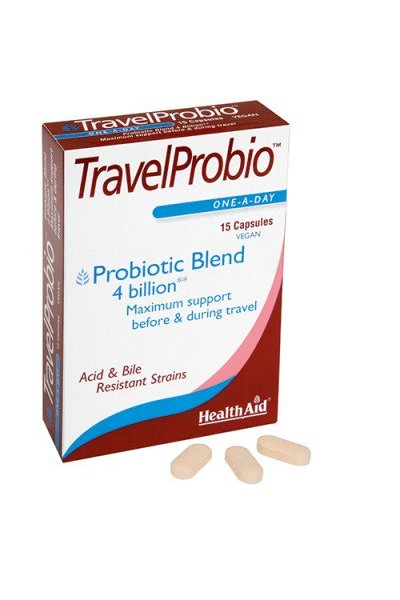 Integratore alimentare dalla formulazione bilanciata costituita dall’associazione di probiotici (Lactobacillus acidophilus, Bifidobacterium lactis, Lactobacillus bulgaricus) e prebiotici (FOS=frutto-oligosaccaridi), utile per contrastare i disagi intestinali che si manifestano comunemente durante i viaggi. La diarrea del viaggiatore” è una sindrome caratterizzata da diarrea di variabile intensità (da poche scariche a diarrea liquida, raramente con sangue e muco), che può essere associata a dolori addominali, nausea, meteorismo, malessere generale e talora febbre. I sintomi possono insorgere in qualunque momento del viaggio e talora ripresentarsi nel corso dello stesso. Le cause possono essere molteplici: batteri, virus, parassiti, ma talora anche lo stress del viaggio, il cambio dell'alimentazione, il clima, l'altitudine. Le capsule di TravelProbio sono contenute in una confezione speciale blister in grado di proteggerle dagli effetti dannosi dell’ossigeno e dell’umidità fino al momento in cui verranno consumate assicurando, così, l’efficacia dei probiotici senza doverli conservare in frigo.