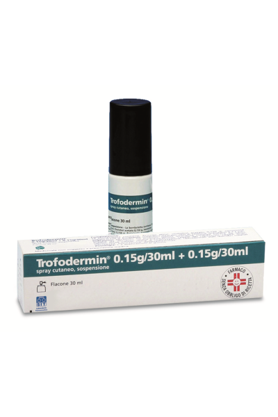 EccipientiTrofodermin 500 mg/100 g + 500 mg/100 g crema Stearato di polietilenglicole; acido stearico; paraffina liquida; lanolina; dimeticone; nipasept (metile para–idrossibenzoato, etile para–idrossibenzoato e propile para–idrossibenzoato); floranol; acqua depurata. Trofodermin 5 mg/ml + 5 mg/ml spray cutaneo, sospensione Magnesio stearato; paraffina liquida; isobutano a 3,2 bar.