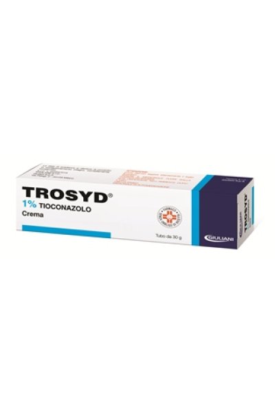 Indicazioni terapeuticheTROSYD 1% Crema – 1% Polvere cutanea – 1% Emulsione cutanea Dermatomicosi sostenute da dermatofiti, lieviti ed altri miceti sensibili al Tioconazolo. Infezioni cutanee da batteri Gram–positivi sensibili al farmaco. Per la concomitante attività antimicotica e antibatterica, è particolarmente indicato nelle infezioni cutanee miste. TROSYD 28% Soluzione cutanea per uso ungueale Onicomicosi sostenute da dermatofiti e lieviti. Per la concomitante attività antibatterica, è particolarmente indicata nelle infezioni miste. TROSYD 1% Soluzione cutanea TROSYD soluzione cutanea è indicata nel trattamento topico delle infezioni cutanee sostenute da miceti (dermatofiti e lieviti), anche se associate a sovrainfezioni da batteri Gram–positivi ad essa sensibili, come coadiuvante alla terapia con altre preparazioni topiche specifiche. La soluzione cutanea permette una maggiore facilità di applicazione nelle dermatomicosi più estese ed esplica una detersione medicata della cute glabra o pelosa. Inoltre, consentendo il trattamento di un’ampia superficie cutanea, rende possibile l’eliminazione dell’agente patogeno non solo dove sono rilevabili variazioni morfologiche cutanee ma anche dove la cute è apparentemente sana.