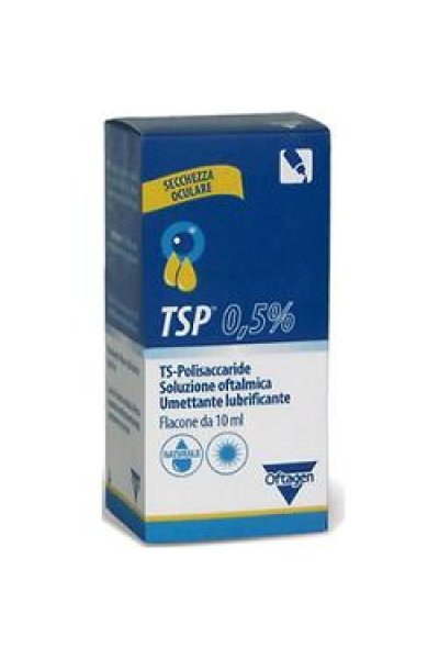 Dispositivo medico CE. Soluzione ooftalmica che contiene una sostanza vegetale, estratta da semi della pianta Tamarindus indica, utile per la protezione corneale, trasparente, viscoelastico, sterile. TSP forma sulla superficie oculare un film in grado di lubrificare ed umidificare la cornea e la congiuntiva, proteggendole dalle irritazioni dovute a cause fisiche ambientali (vento, esposizione prolungata ai raggi solari, fumo di sigaretta, aria secca), a stress visivo (intenso impegno della vista, videoterminali) o a fattori meccanici (lenti a contatto, interventi sull’occhio).