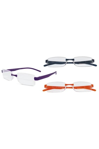 Ochiali da lettura Triple, realizzati con lenti asferiche e astine flessibili in metallo anallergico.