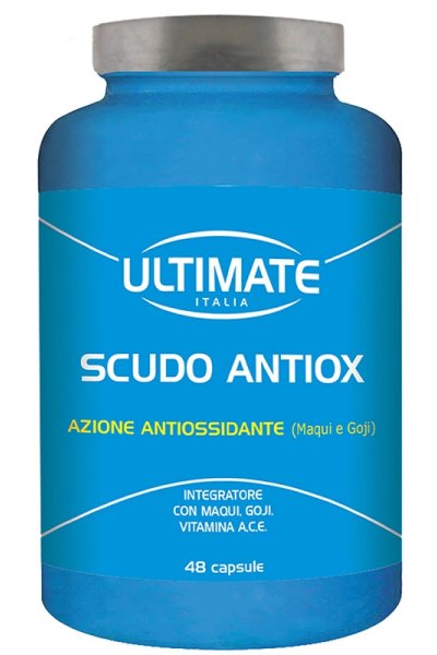 Integratore alimentare costituito da ingredienti antiossidanti con i maggiori valori ORAC. ORAC è la Capacità di Assorbimento dei Radicali dell’Ossigeno: SCUDO ANTIOX contiene i più potenti antiossidanti (maqui 28.200, Garcinia mangostana 24.000 e goji 30.300). Quindi gli ingredienti di Scudo Antiox, oltre ad avere un’azione antiossidante (maqui, goji, Garcinia mangostana), contribuiscono alle naturali difese dell'organismo (Garcinia mangostana), alla protezione delle cellule dallo stress ossidativo (vitamina C, vitamina E, zinco, selenio), alla normale funzione del sistema immunitario (vitamina C, zinco, selenio, vitamina A) e alla riduzione della stanchezza e dell’affaticamento (vitamina C, acido pantotenico).