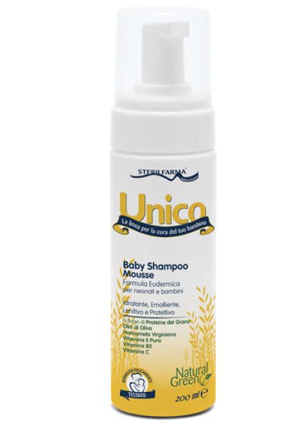 La soffice schiuma di Unico Baby mousse, ottenuta senza l'utilizzo di gas grazie allo speciale erogatore, rappresenta la soluzione ottimale per un'adeguata distribuzione del prodotto sulla delicata pelle del bambino in modo pratico e funzionale.