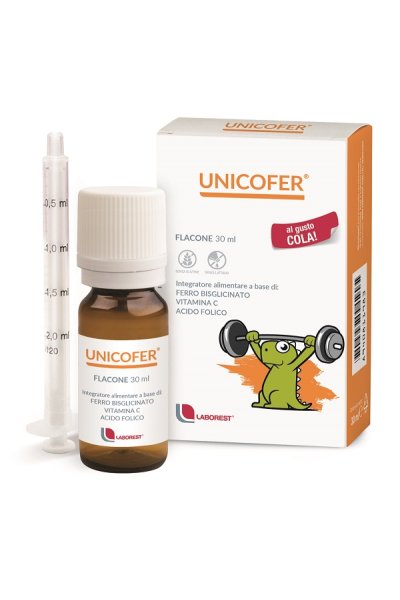 Integratore alimentare a base di ferro bisglicinato, vitamina C e acido folico, utile per integrare eventuali carenze o apportare una quota supplementare di tali sostanze. Il ferro presente in Unicofer è nella forma bisglicinata, ovvero è chelato: questa particolare tecnica farmaceutica permette di massimizzare il suo assorbimento, evitando eventuali problematiche gastroenteriche, quali pesantezza gastrica, reflussi gastroesofagei e diarrea che sono tipiche dell’integrazione di questo minerale.