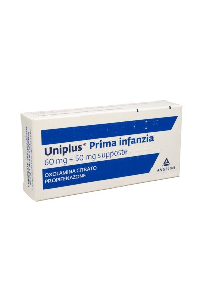 Uniplus Adulti 250 mg/350 mg supposte Ogni supposta contiene 0,250 g di oxolamina citrato e 0,350 g di propifenazone. Uniplus Bambini 125 mg/150 mg supposte Ogni supposta contiene 0,125 g di oxolamina citrato e 0,150 g di propifenazone. Uniplus Prima infanzia 60 mg/50 mg supposte Ogni supposta contiene 0,060 g di oxolamina citrato e 0,050 g di propifenazone. Per l’elenco completo degli eccipienti vedere paragrafo 6.1.