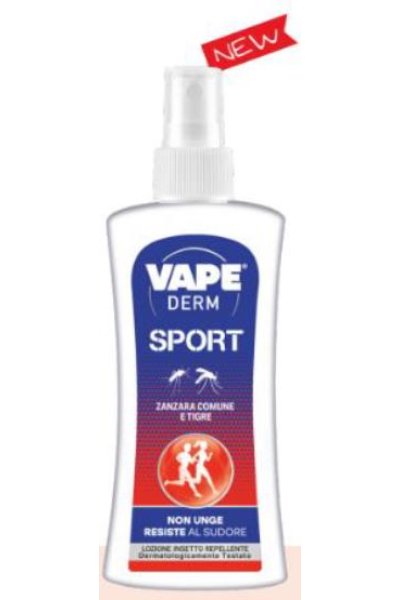 Applicare in maniera uniforme sulle parti scoperte del corpo da una distanza di 10-15 centimetri avendo cura di evitare occhi e bocca. Per viso e collo, spruzzare il prodotto sulle mani quindi applicare sulla pelle. L'applicazione sulla pelle dei bambini dovrà essere effettuata da un adulto. VAPE DERM SPORT LOZIONE è attivo per 6 ore contro zanzare comuni, tigre, tropicali e fino a 7 ore su zecche e zanzare Anofele. Qualora si desideri una protezione più lunga si consiglia di riapplicare il prodotto, non superando le due applicazioni giornaliere.