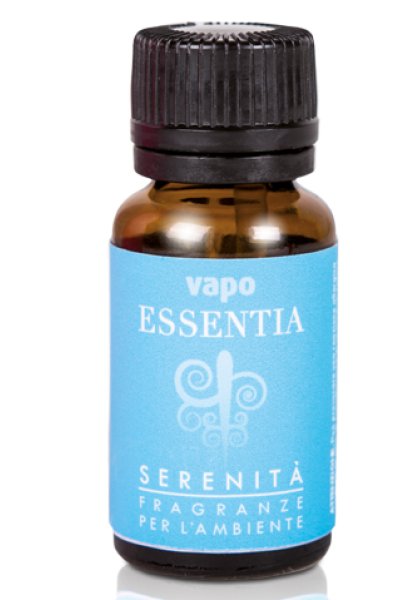 Vapo Essentia è una linea completa di fragranze, creata per personalizzare con un profumo unico e speciale la propria casa.Vapo Essentia Serenità è una combinazione di note di bouquet di fiori bianchi e gialli che ricreano nella mente il ricordo di una passeggiata a piedi nudi su una distesa verde incontaminata. La fragranza di gardenia e bergamotto inebria l'ambiente e il caldo profumo leggermente speziato del gelsomino, del mughetto e del ylang ylang, "il fiore di tutti i fiori", distende il corpo e la mente.
