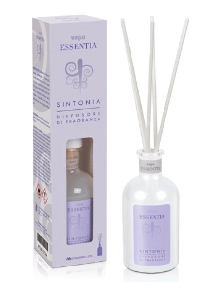 Vapo Essentia Sintonia è un mix di profumi che ricorda i colori dell'estate con i suoi frutti e i suoi fiori. Le note profumate di melone, cocomero, mela, limone e pompelmo si incontrano con quelle fiorite di violetta, magnolia e vetiver ricreando il ricordo frizzante e spensierato della bella stagione in buona compagnia.