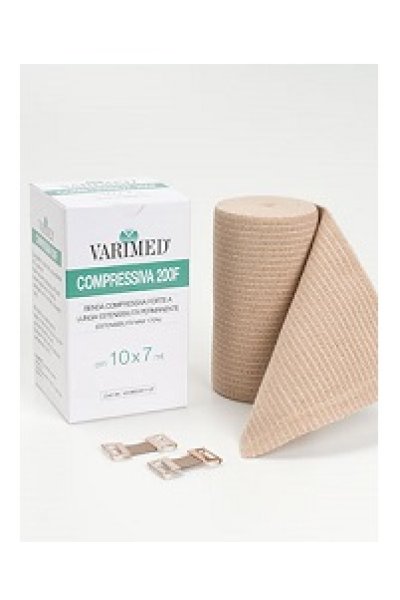 Benda compressiva forte, color carne, latex free, in cotone 92%, poliuretano 8%, monoelastica (estensibilità 170% circa), particolarmente resistente all’invecchiamento, ai medicamenti, alla sudorazione; con bordi longitudinali in tessuto antisfilacciamento e dotata di graffette.Formato