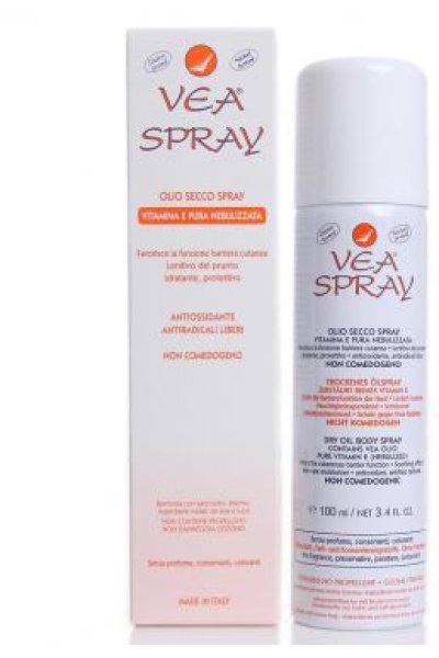 VEA SPRAY è una formulazione assolutamente innovativa: permette di stendere l'olio VEA (Vitamina E acetato allo stato puro) su superfici cutanee molto vaste formando sulla pelle un film sottilissimo di Vitamina E pura. VEA SPRAY può essere applicato anche in assenza completa di toccamento e sfregamento cutaneo. Non contiene acqua, conservanti, profumi e coloranti, per minimizzare i rischi di allergia.