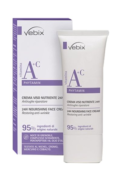 Phytamln A+C Crema nutriente 24h aiuta ad attenuare, correggere e ridurre le rughe profonde. Dalla texture ricca e piacevolmente profumata e arricchita da oli e burri naturali, che la rendono un vero nutrimento per la pelle. Ha un'azione tonificante e restitutiva globale grazie all'azione sinergica dei suoi numerosi attivi. In particolare contiene un complesso schiarente ottenuto per fermentazione di acido Kojico, acido lattico, estratto di liquirizia ed Aspergillus Ferment che aiuta a prevenire e ridurre le macchie cutanee e le discromie.