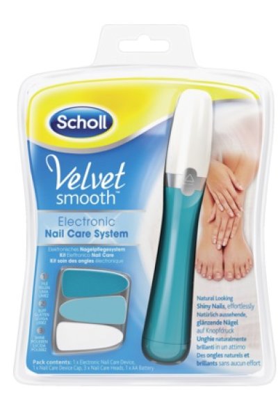 Kit elettronico per la cura delle unghie di mani e piedi, dotato di tre testine intercambiabili per limare, levigare e e lucidare le unghie.
