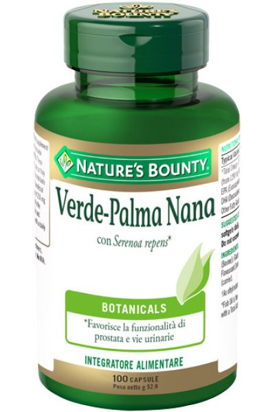 Verde-Palma Nana è un integratore alimentare a base di palma nana [Serenoa repens (W. Bartram) Small]. Le sue bacche favoriscono la funzionalità di prostata e vie urinarie nonché il drenaggio dei liquidi del corpo.