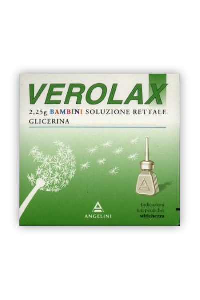 Verolax “6,75 g Adulti Soluzione Rettale” 6 Contenitori Monodose 9 G: Ogni contenitore monodose da 9 G contiene: Principio attivo: glicerina g 6,75 Verolax “2,25 g Bambini Soluzione Rettale” 6 Contenitori Monodose 3 G: Ogni contenitore monodose da 3 G contiene: Principio attivo: glicerina g 2,25 Verolax “2,25 g Adulti Supposte” 18 Supposte:Ogni supposta adulti contiene: Principio attivo: glicerina g 2,25 Verolax “1,375 g Bambini Supposte” 18 Supposte: Ogni supposta bambini contiene: Principio attivo: glicerina g 1,375 Verolax “0,675 g Lattanti Supposte” 12 Supposte: Ogni supposta lattanti contiene: Principio attivo: glicerina g 0,675