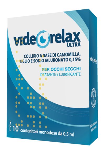 Non utilizzare se il contenitore è aperto o danneggiato. Per evitare contaminazioni non toccare l’estremità del contenitore aperto e non metterla a diretto contatto con l’occhio. Ciascun contenitore monodose va usato solo immediatamente dopo l’apertura. L’eventuale residuo non deve essere riutilizzato, poiché la soluzione non contiene conservanti e il prodotto rimanente potrebbe contaminarsi. La somministrazione a bambini o persone con abilità limitata deve essere effettuata da parte di un adulto responsabile. Non sono note interazioni del prodotto con la somministrazione di farmaci per uso oftalmico. Tuttavia, si consiglia di non somministrare altri farmaci o dispositivi medici per uso oftalmico nei 10 minuti successivi alla somministrazione di Videorelax ULTRA. Non è necessario rimuovere le lenti a contatto prima della somministrazione del prodotto poiché esso non altera le caratteristiche fisiche, inclusa la trasparenza, delle più diffuse lenti a contatto morbide e rigide. Per esclusivo uso topico oculare. Tenere fuori dalla portata dei bambini.