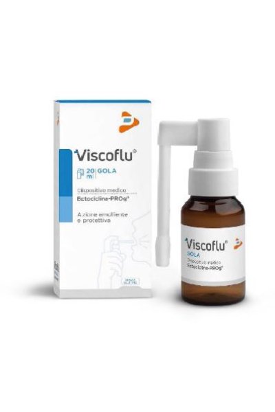 protegge la mucosa faringea e orale attraverso l'azione fisico-chimica della miscela Ectociclina-PROg in esso contenuta, nella quale: