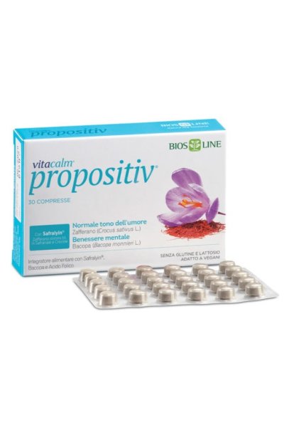 Gli stati di tensione e le situazioni stressanti possono ripercuotersi negativamente sul tono dell’umore, generando disturbi come apatia, nervosismo, pensieri negativi ricorrenti e difficoltà di concentrazione. Chi soffre di questi disturbi, inoltre, tende a isolarsi socialmente e a evitare anche le attività che normalmente si fanno con piacere. Propositiv può essere utile in tutte queste situazioni per ritrovare il buonumore e la positività. Contiene safralyin, polvere di stimmi di zafferano, utile per favorire il normale tono dell’umore ed estratto di bacopa, una pianta che cresce in India e nelle zone tropicali, utile per il benessere mentale. Indicato in caso di apatia, nervosismo e pensieri negativi ricorrenti.