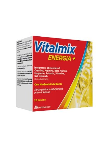 Integratore alimentare con arginina e cretina utile in tutti i casi di ridotto apporto con la dieta. La formulazione di Vitalmix Energia + contiene: