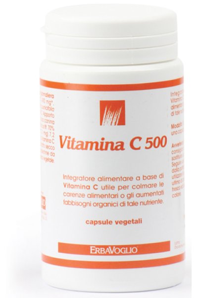 Tenore per dose giornaliera (1 capsula): Vitamina C 490 mg, Acerola estratto secco (Malpighia punicifolia L. Fructus titolato 50% Vitamina C, apporto Vitamina C 5 mg) 10 mg, Rosa canina estratto secco (Rosa canina L. Fructus titolato 70% Vitamina C, apporto di Vitamina C 5 mg) 7,2 mg, Apporto totale di Vitamina C 500 mg VNR* 625%, Estratto secco supportato da Maltodestrine da Mais non OGM, Gelatina vegetale.