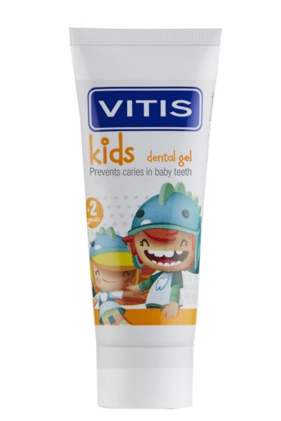 Il gel dentale per bambini VITIS non contiene zuccheri, derivati del latte o animali, glutine o sodio lauril solfato (SLS).