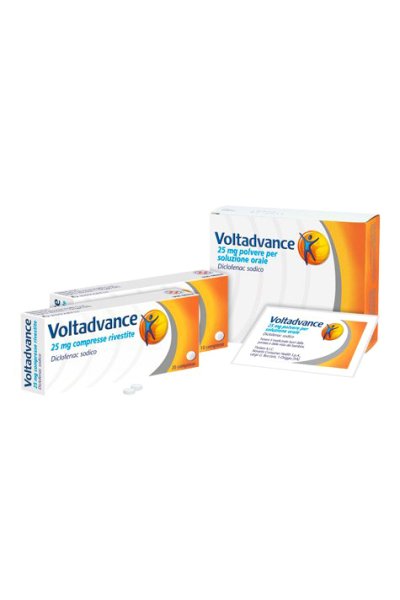 PosologiaAdulti e adolescenti sopra i 14 anni: 1-3 compresse rivestite o bustine di polvere per soluzione orale al giorno, ai pasti, anche 2 in unica somministrazione. La dose massima giornaliera è di 75 mg. Non superare le dosi consigliate; in particolare i pazienti anziani devono attenersi ai dosaggi minimi sopraindicati. Le compresse rivestite vanno deglutite intere, con acqua od altro liquido; le bustine di polvere vanno sciolte in un bicchiere di acqua prima dell’assunzione. Si consiglia l’assunzione del prodotto preferibilmente a stomaco pieno. Non superare i 3 giorni di trattamento. Gli effetti indesiderati possono essere ridotti al minimo somministrando la minima dose efficace per la minima durata necessaria per controllare i sintomi (vedere paragrafo 4.4). Popolazioni speciali Insufficienza renale Voltadvance è controindicato in pazienti con grave insufficienza renale (vedere paragrafo 4.3). Si raccomanda cautela nella somministrazione di Voltadvance in pazienti con insufficienza renale da lieve a moderata (vedere paragrafo 4.4). Insufficienza epatica Voltadvance è controindicato in pazienti con grave insufficienza epatica (vedere paragrafo 4.3). Si raccomanda cautela nella somministrazione di Voltadvance in pazienti con insufficienza epatica da lieve a moderata (vedere paragrafo 4.4).