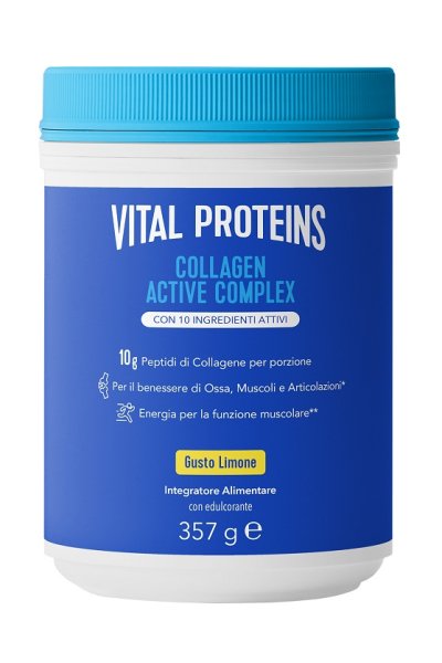 Peptidi di collagene, glicina, minerali (lattato di calcio, citrato di magnesio, citrato di calcio, gluconato di zinco), correttore di acidità (acido citrico), stabilizzante (gomma di xanthan), vitamine (C, D, K, riboflavina, B6), acido ialuronico (da ialuronato di sodio), edulcorante (glicosidi steviolici da Stevia), aromi.