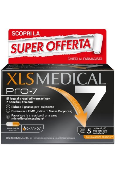 XLS MEDICAL PRO-7 ha caratteristiche di sicurezza e tollerabilità certificate. Non è un pasto sostitutivo.